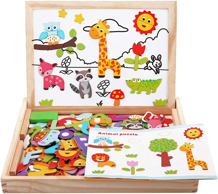 BeebeeRun Puzzles Enfant en Bois Magnétique 110+ Pièces,Jouet Garcon 2 Ans,Jouet en Bois Enfants Aimants Jigsaw Jeux Jouets Educatif pour Enfants Fille Garcon 3 Ans 4 Ans 5 Ans