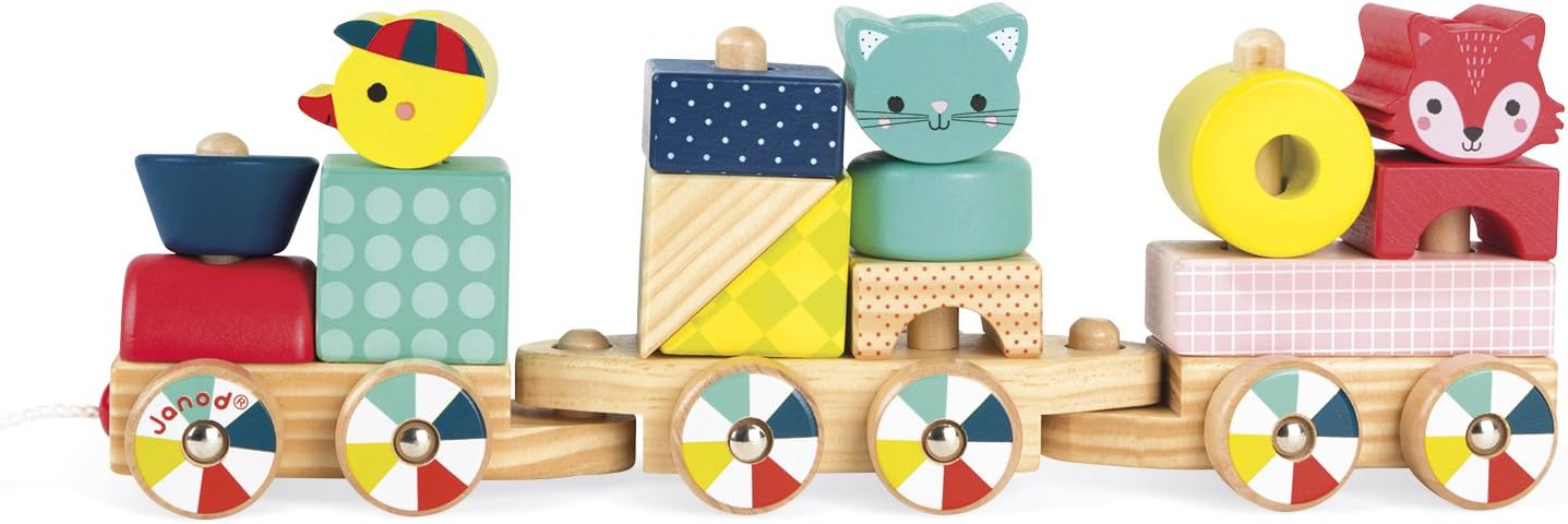2 jouets en 1 : un train en bois composé de 3 wagons, pour développer l'imagination de votre enfant et un jouet à trainer pour favoriser sa motricité