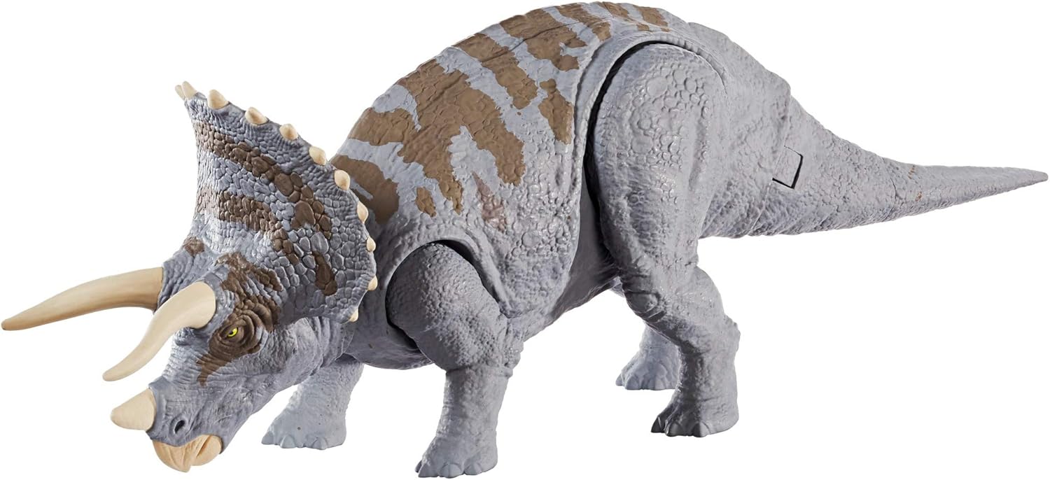 Jurassic World Grande figurine dinosaure Tricératops Double Attaque, coups de queue, de tête ou claquements de mâchoire, jouet pour enfant, GFG78