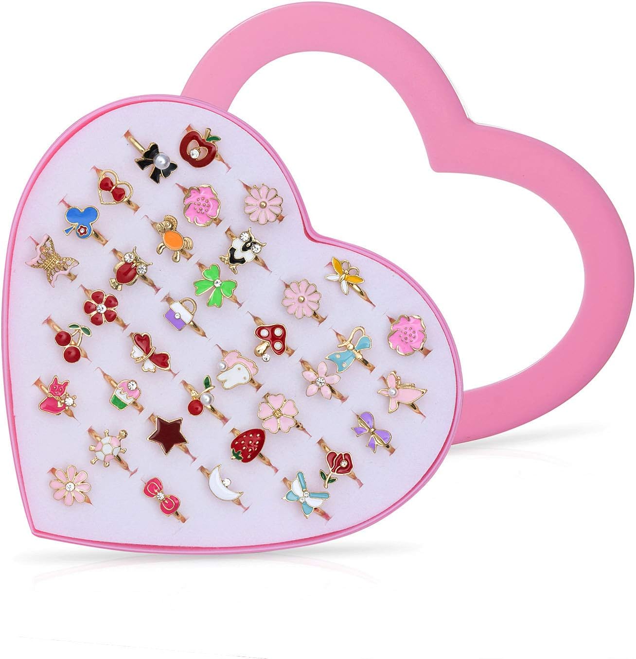 Vordas 36 Pièces Bagues pour Enfants, Ensemble de Bagues Petites Filles avec Boîte De Coeur Rose, Super Jolie et Belle Présentation pour Un Cadeau à Une Petite Fille